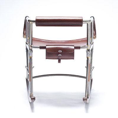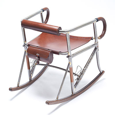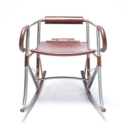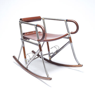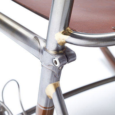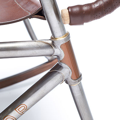Inspired by classic hand-built racing and touring bicycles manufactured by the master Constructeurs of the 1940s, the Randonneur Chair is handcrafted from Reynolds 631 tubing, hardwood and bicycle saddle leather. Using bicycle geometries and traditional frame-building techniques, it is both a celebration of cycling and of bespoke British craftsmanship